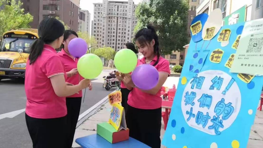 “欢乐签到站”是活动的活力前哨。实践队员与社区工作人员手捧着多彩气球,笑迎每一组家庭。孩子们欣喜地接过气球,眼睛被鲜艳色彩吸引,小手紧紧抱着。签到展板上“感恩相遇,相约小时光”的字样,在气球映衬下格外温馨,社区家庭纷纷踊到展板签名拍照,成为社区朋友圈的“打卡热地”,这也为活动定下轻松愉悦的基调。