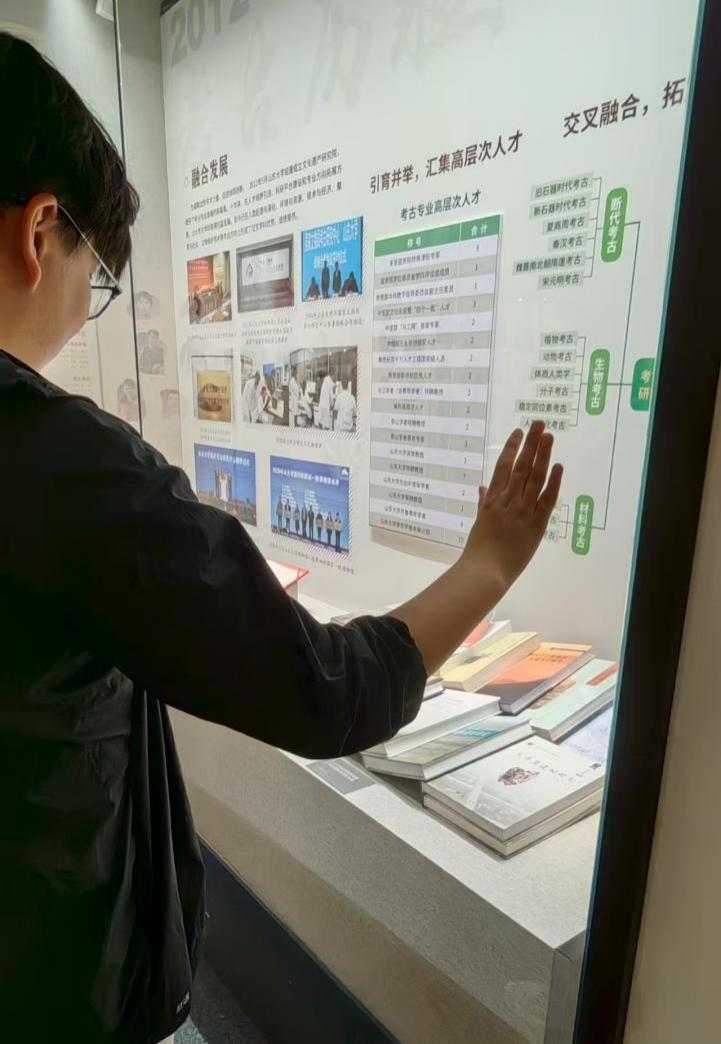 在学科教育板块,实践团队重点考察了考古人才培养模式的演进。团队仔细记录了所展出的山东大学考古学科1980年至2020年间各阶段的教学计划、实习方案和毕业生去向数据。通过分析不同时期课程设置与实践训练的变化,总结出考古教育从知识传授到能力培养的转型特征。此外,团队对中外联合考古项目的培训资料进行详细记录,重点探讨了国际化视野在考古教育中的重要性。