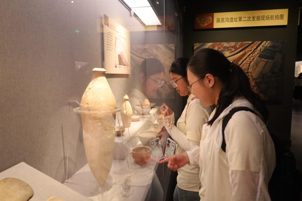 除了彩陶,博物馆还通过模拟聚落场景,让同学们直观地感受到了6000年前先民们的生活状态。半地穴式房屋、陶器作坊、公共活动区域等复原场景,生动地展现了当时人们的居住环境、生产方式和社会组织形式。同学们穿梭其中,仿佛穿越时空,与远古先民进行了一次近距离的对话。