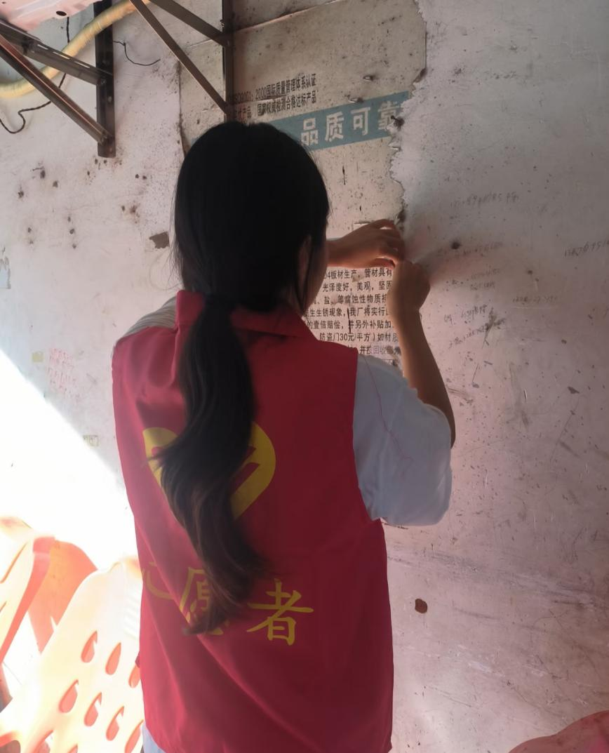 活动当天上午,实践队队员到达华沁苑小区,在居委会工作人员的引导下,按照既定分组开展楼道清洁工作。清洁组队员首先对楼道墙面进行集中清理,面对墙面的小广告,队员们先用铲刀小心翼翼地将其铲除,对于残留的黏胶,再用蘸有清洁剂的抹布反复擦拭,确保墙面恢复整洁。在清理过程中,队员们发现部分楼层的墙面存在儿童涂鸦、污渍残留等情况,便采用温和的清洁方式进行处理,避免对墙面造成二次损坏。对于楼梯扶手、窗台等易积灰的部位,队员们逐一进行擦拭,确保无卫生死角。经过努力,楼道墙面焕然一新,乱涂乱画和小广告现象得到有效整治。