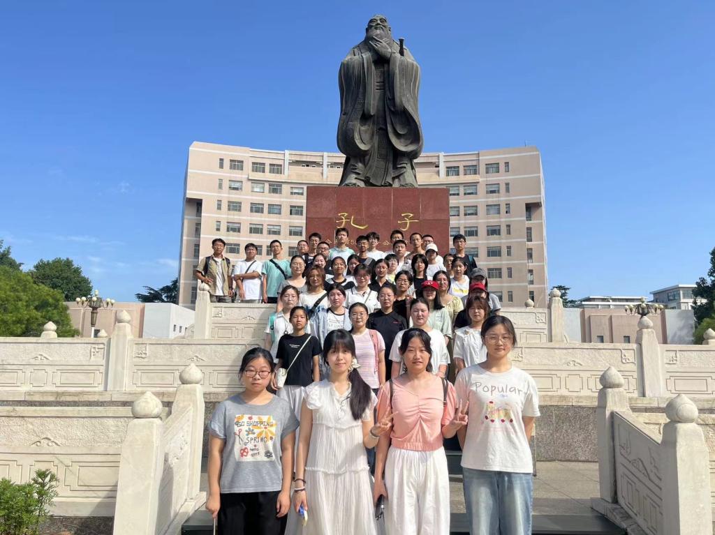 本次活动由拾光文化创意社具体承办,配备校园导游分东西两路同步开展。游园途中,导游团队以校园文化地标为核心,围绕承载学校发展记忆的综合楼、馆藏丰富的图书馆、记录办学历程的校史馆,以及见证学风传承的西联教室、彰显校园人文气息的孔子文化广场等地点,将建筑背后的校史故事与育人理念相结合,为新生细致讲解校园空间布局与文化价值。新生们全程兴致盎然,主动询问学习资源分布、生活服务配套等问题,导游耐心解答,现场互动氛围热烈。