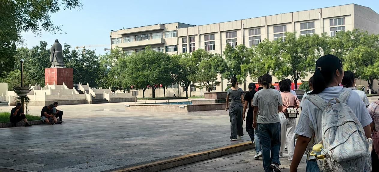 活动当天,校园内处处洋溢着青春的气息。早上9点,各学院志愿者身着统一服装,早早在孔子书院入口处等候,热情地招待每一位参与活动的新生。随着游园活动正式启动,新生们以班级为单位,在志愿者的带领下开启了校园探索之旅。在图书馆前,志愿者生动讲述了图书馆的建设历程与馆藏资源,鼓励新生们多走进图书馆,在知识的海洋中汲取养分;在校园标志性建筑 “文渊楼” 前,志愿者结合曲阜深厚的儒家文化底蕴,介绍了楼宇命名的寓意与校园文化建设理念,让新生们深刻感受到曲园浓厚的文化氛围;在食堂区域,志愿者带领新生了解了不同食堂的特色菜品,详细讲解了就餐流程。这些环节极大地调动了新生的参与热情,大家纷纷拿出手机拍照留念,记录下与曲园的初次美好相遇。游园活动接近尾声时,不少新生表示,通过这次活动,不仅快速熟悉了校园布局,解决了 “找不到教室”“分不清食堂” 的困扰,更感受到了学校的用心与温暖。