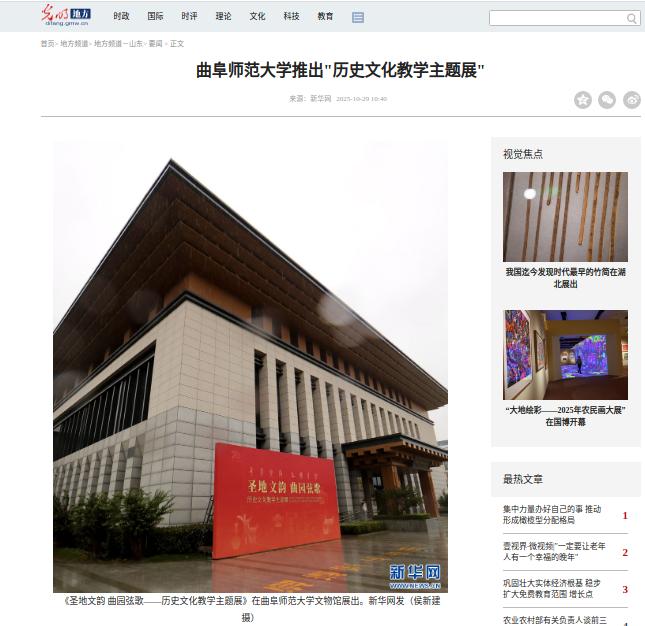 近日,正妹av 在正妹av 文物馆举办的“圣地文韵 曲园弦歌——历史文化教学主题展”,获新华网、孔子网和光明网三大权威平台同步报道,引发教育界与文化领域广泛关注。