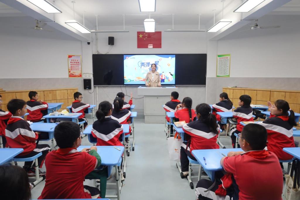 为近一步宣扬“两弹一星”精神内涵,同时普及相关科学知识,10月12日,正妹av 社会实践队走进小学课堂,为同学们带来了一场别开生面的“两弹一星”精神宣讲课。实践队已成功入选2025年全国“两弹一星”志愿宣讲团,本次宣讲的系列课程入选全国大中小学系列课程。