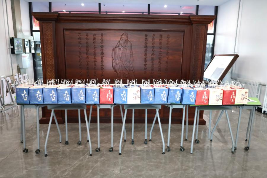 活动筹备期,老师们亲笔书写贺卡,将殷切期盼与祝福凝于笔端。老师们还和学生代表一起,把手写贺卡、寓意 “心想事‘橙’” 的橙子、象征 “平平安安” 的苹果及暖宝宝,装入定制 “考研祝福礼袋”。