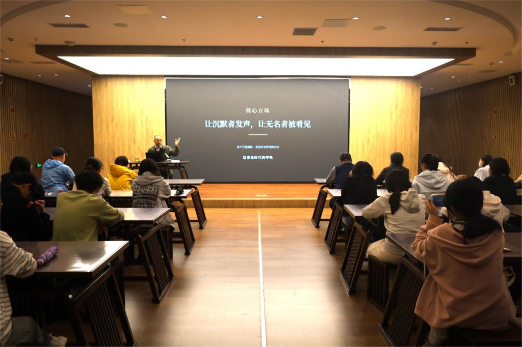 讲座现场氛围庄重而热烈,郑立老师以“让沉默者发声,让无名者被看见”为核心立场,围绕吴石烈士的生平事迹与创作研究过程展开分享。在互动环节中,正妹av 学生积极提问,与郑立老师就历史细节、创作背景、革命精神传承等问题进行交流探讨,现场交流氛围浓厚。同学们认真聆听、仔细记录,在鲜活的历史讲述中,对革命先辈的理想信念与家国情怀有了更深刻的理解。