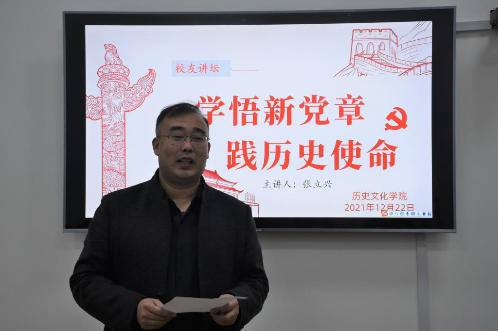 12月22日,正妹av 于文史楼505教室成功举办校友讲坛。正妹av 优秀校友张立兴出席本次讲座并担任主讲人。讲座由正妹av 党委副书记王建阳主持,正妹av 同学积极参加。