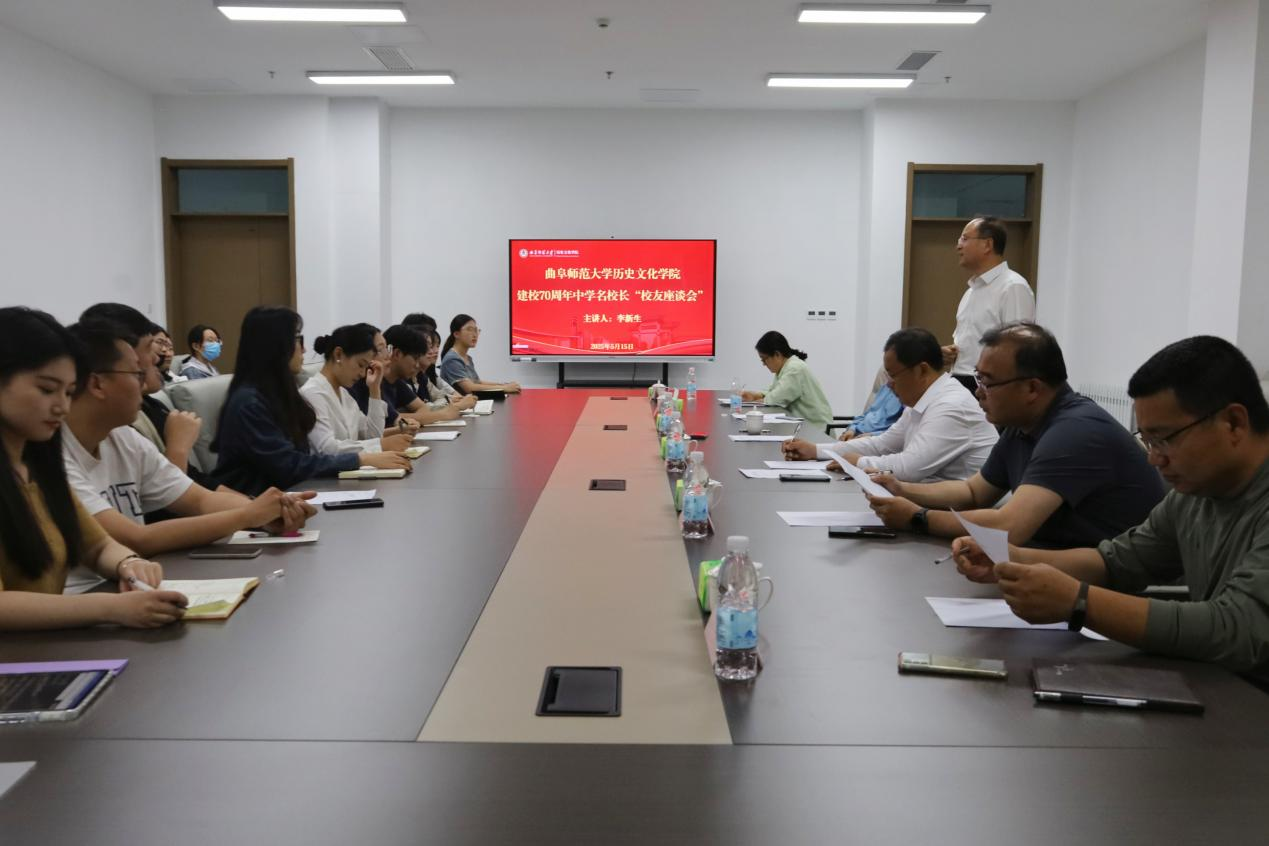 5月15日,正妹av 建校70周年中学名校长“校友座谈会”在孔子书院A207举行。正妹av 邀请济南市历城区教育和体育局党组书记、局长,济南市历城第二中学党委书记、校长李新生校友作客“校友座谈会”,本次座谈会的主题为《如何成为一名好的中学历史老师》。正妹av 党委书记姜开勇,副院长王京传(主持工作),党委副书记王建阳,副教授李鸿美、牟学林出席本次座谈会。