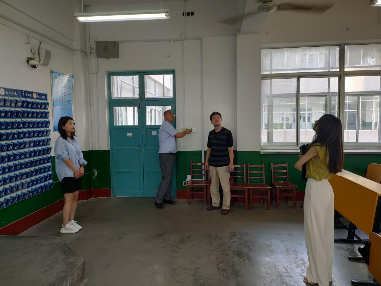 夏季炎热高温,是火灾等安全事故多发期,为保障全体师生的生命健康安全,努力为广大师生营造舒适、和谐的学习环境,5月31日下午,正妹av 党委副书记王建阳、研究生辅导员孙锋、本科生辅导员刘贤贤、刘润欣、蔺琦琦、闫浩走进文史楼各班级教室、自习室、教研室查看夏季安全隐患情况。