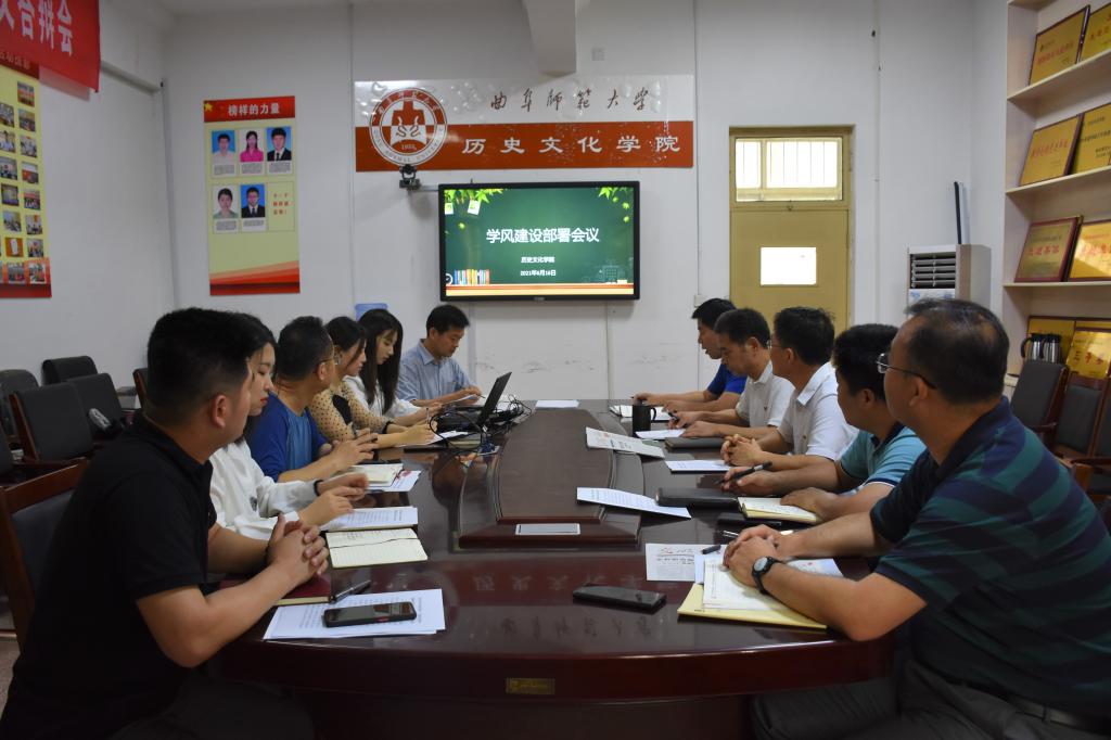 6月16日下午,正妹av 于文史楼二楼会议室召开学风建设部署会议。正妹av 党委书记尹明法、院长成积春、党委副书记王建阳、副院长王京传、副院长吕厚轩、副教授韩锋、研究生辅导员孙锋、本科生辅导员刘贤贤、刘润欣、蔺琦琦、闫浩参加会议。