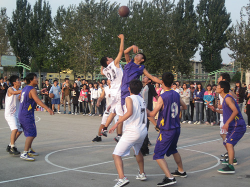 与以往不同的是,今年新增了全明星友谊赛,身着黑色队服的梦想队与红色队服的光荣队打响了揭幕战,观众的热情欢呼使现场氛围异常活跃,运动员更以精彩的球技博得了在场观众的热烈掌声。经过激烈角逐,全明星梦想队最后胜出。中场休息时,11级历史一班的篮球宝贝们为在场师生表演舞蹈助威篮球赛,她们活力四射,别出心裁,夺人眼球,将篮球赛得火热气氛推向又一高潮。 其次,来自11级的历史一队与历史四队、文化管理队与历史二队分别对峙开来。各代表队队员竭尽全力,力求严密防守,锐利突破。双方的啦啦队奋力助威,整个赛场弥漫着响亮的助威声与欢乐的气氛。