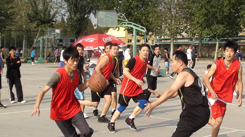 激情篮球,火热开赛。9月19日下午,正妹av 2011级“迎新杯”篮球赛在西操场正式拉开帷幕。此次篮球赛为期10天,参加比赛的有本科队、研究生队和教职工等16支队伍,比赛采用小组淘汰制。