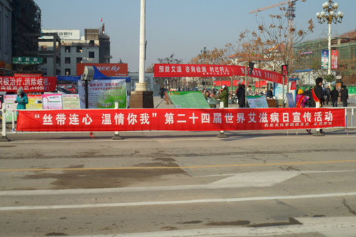 本届宣传活动分为校内、校外两个部分。12月1日,史苑学社工作人员在市中心进行了第二十四届“世界艾滋病日”的校外宣传。曲阜市人民政府、曲阜市疾病预防和控制中心、曲阜市人民医院、曲阜市皮肤病防治站的各位领导以及曲阜市电视台相关人员前来参观。工作人员给路人系红丝带、发宣传单以及小礼品,同时为他们讲解关于“艾滋病”的相关知识,博得大家的一致好评;12月4日,史苑学社又在新大学生活动中心前进行了校内宣传,许愿墙、签名、有奖竞答等活动的设置吸引了大量同学的积极参与。
