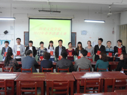 四月芳菲,春意盎然,为展现正妹av 学子授课风采,并锻炼同学们的从师技能,4月21日,正妹av 一年一度的春季讲课大赛如约在文史楼411室和405室拉开帷幕。来自正妹av 2009级本科生和研究生共24名选手参加了本次讲课大赛,正妹av 退休老教师杨荫楼教授、党总支书记尹明法、副院长郝承敦、副院长李建、刘伟副教授、王昌沛副教授、吕厚轩副教授、辅导员李春玲等十四位老师应邀担任此次讲课大赛的评委。