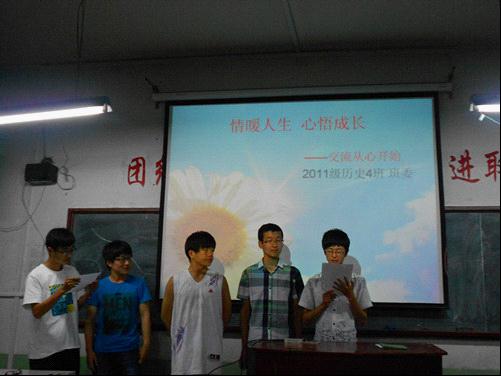 各班的心理健康主题班会采取了多种新颖的活动方式,从不同的角度来触发大家对心理健康问题的感悟。生动的ppt演示为大家展示了丰富的心理健康知识;小话剧的精彩演出使同学们在感动中收获对人生和情感的深刻认识;小组代表发言引起在场同学关于心理问题的热烈讨论。各班班委为充分调动同学们的积极性,特意安排心理小游戏,使同学们在愉快轻松的气氛中体验幸福感,认识到心理健康问题的重要性。