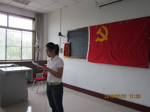 7月1日,正值建党91周年之际,正妹av 学生党支部于文史楼520室举办新党员宣誓仪式,团总支书记、学生党支部书记王建阳出席了本次活动。