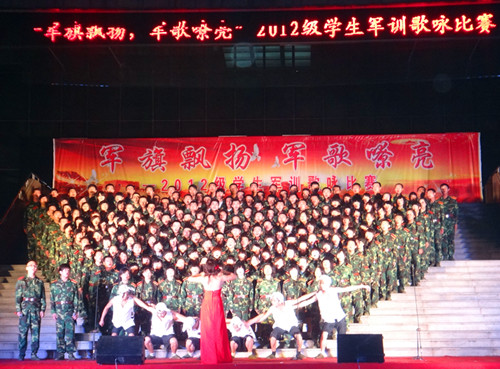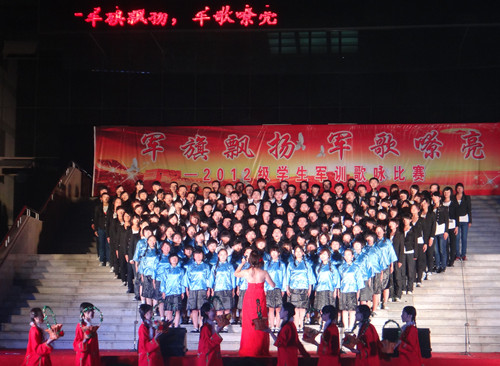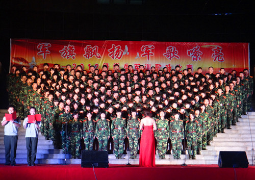 9月18日晚,“军旗飘扬 军歌嘹亮”2012级学生军训歌咏比赛在科技楼前拉开序幕。