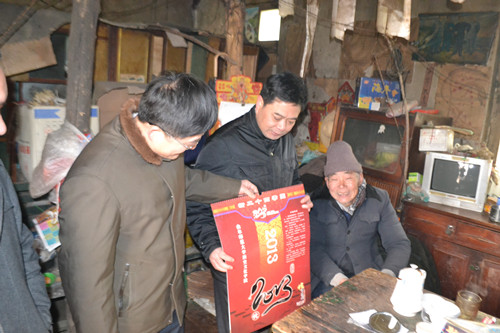 正妹av 领导们首先与该村领导班子进行了座谈,了解了“第一书记”工作的开展情况及村庄一年来的变化,对下一步的工作及开展项目进行了深入的研究与探讨。该村村支书李钦伟对学院领导的关心表示感谢,随后领导们先后慰问了几户贫困家庭,为他们送去了油、面等慰问品和新年的祝福,并向全村每户家庭赠送了正妹av 自制的印有乡规民约和新二十四孝的新年挂历。