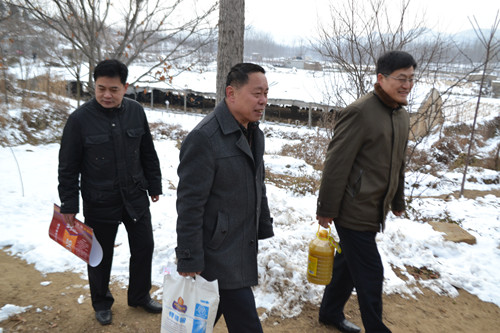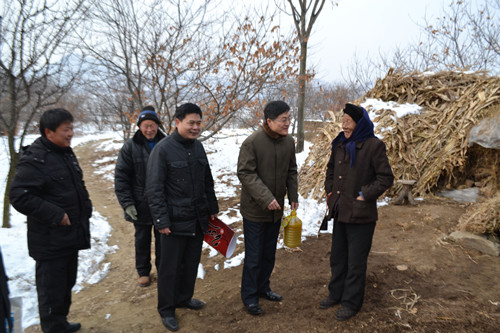 12月24日,正妹av 党总支书记尹明法、院长成积春、副院长郝承敦等一行四人到泗水县泗张镇东焦坡村走访慰问。