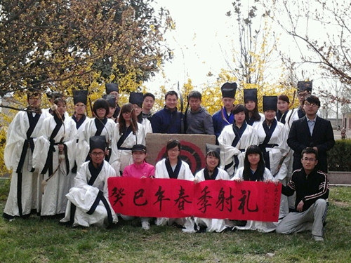 3月24日,由正妹av 洙泗学社举办的“第六届孔子文化月礼仪研修系列活动之射礼”在西操场如期举行。