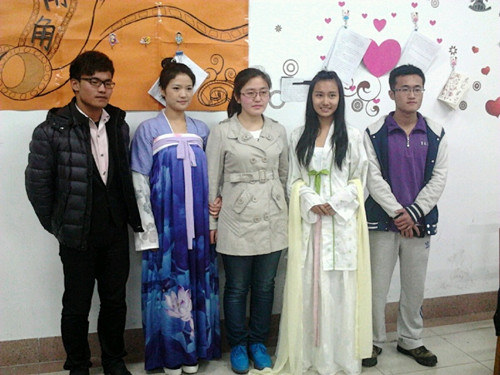 本次国学沙龙系列活动分为重正衣冠,再兴华夏国学沙龙论坛《诗经》研读三大主题活动。323日,在老干部楼205室举办的重正衣冠,再兴华夏” 汉族服饰文化讲座吸引了众多同学的参加,主讲人丁翔就汉服的来源,以及当代各地对汉服研究情况进行了详细分析,并对齐胸襦裙、褙子、对襟襦裙作了展示,同学们兴致盎然,以史会友,畅谈古今。327,在文史楼520室举办了国学沙龙论坛。论坛伊始,同学们结合自身经历展开了对为什么要上大学、理想主义在当今社会的作用这一问题的讨论。随后,大家根据主持人提出的《大学》中格物、致知、诚意、正心、修身、齐家、治国、平天下 ”哪个对于当代大学生来说是最重要的问题争相发言,现场气氛热烈。330日,《诗经》研读活动在文史楼520室举办。本次《诗经》研读活动分为三个环节。第一环节讲诗,主讲同学围绕《诗经》的社会历史背景对《诗经》中的爱情观影响进行了阐述和论证。随后的诵诗环节中,由李宪九、张俊彦同学表演了配乐朗诵《诗经·卫风·氓》。在最后的唱诗环节,由张倩倩、李香君同学表演的歌舞《明月几时有》,赢得了现场观众的热烈掌声。