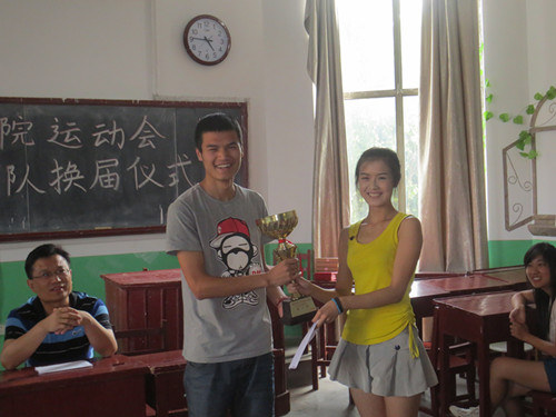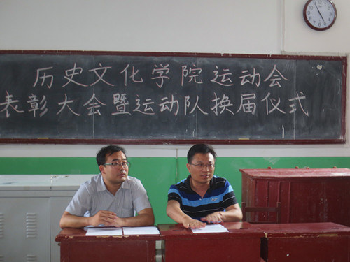 6月14日下午,正妹av 2013年运动会表彰大会暨运动队换届仪式在文史楼309室举行,出席本次大会的有正妹av 党总支副书记王慕东、团总支书记王建阳,以及2013年运动会的教练员及运动员等。大会由王建阳主持。