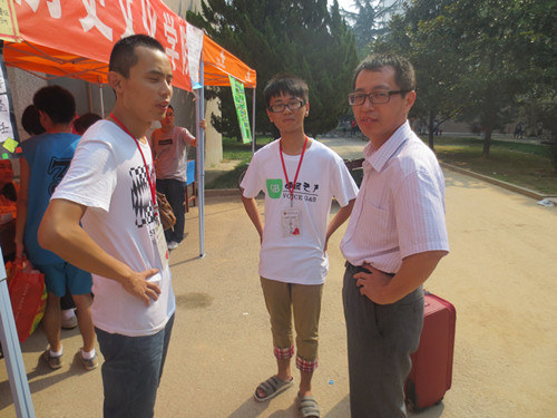 7日上午,正妹av 党总支副书记兼2013级新生辅导员王慕东和团总书记王建阳前往新生接待处,亲切看望了前来报到的新生,并对学院迎新工作进行了指导。晚上,王慕东、王建阳和李春玲前往孔子文化广场慰问迎新的工作人员。