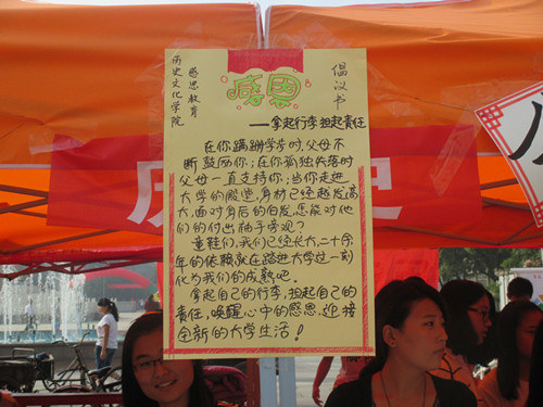 今年正妹av 创新了迎新方案,推出了一系列感恩教育方针,如“我的行李我来提”、“接过爸妈手中的行李”等,并成立感恩教育小分队,提出倡议,时刻提醒新生响应“拿起行李,担起责任”的口号,减轻家长的负担。让新生从入学开始就接受感恩教育,并培养责任意识和独立自主的能力。为保障迎新工作顺利开展,正妹av 团总支、学生会全体成员以及高年级同学积极工作,通过设立新生咨询处、接待处、饮水处、后勤部,并发放“致新生的一封信”、“致家长的一封信”、“正妹av 手册”等新生入学指南,并帮助新生搬运行李、引导新生入住宿舍等各种方式,为新生报到提供全程服务。正妹av 迎新工作服务周到,细致全面,收到了广大师生的好评。