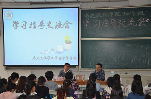 10月9日下午,由正妹av 学生会学习部主办的学习指导交流会在综合楼201教室举办。郝承敦副院长、孙晓光老师分别就历史学和国际政治对2013级历史学类的同学进行了专业学习指导。交流会由党总支副书记王慕东主持。