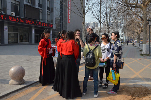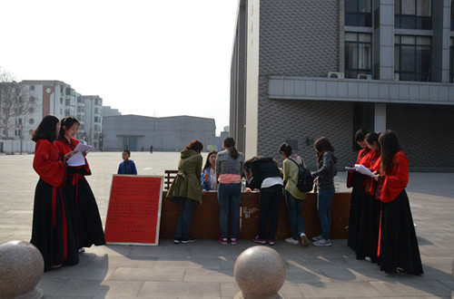 在第七届“孔子文化月”即将到来之际,3月22日、23日、26日下午,正妹av 在大学生活动中心前举办了“孔子文化使者”招募活动。