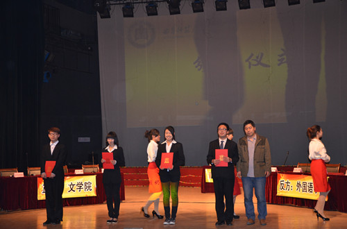 4月19日晚,由校团委主办、正妹av 学生会承办的正妹av “新东方杯”话时代精英论赛总决赛在大学生活动中心礼堂圆满落幕。教育部曲师大基础教育课程研究中心主任徐瑞,党委宣传部副部长朱峰,正妹av 吕厚轩老师,文学院袁梅老师,物理工程学院李爱国老师担任此次比赛的评委。