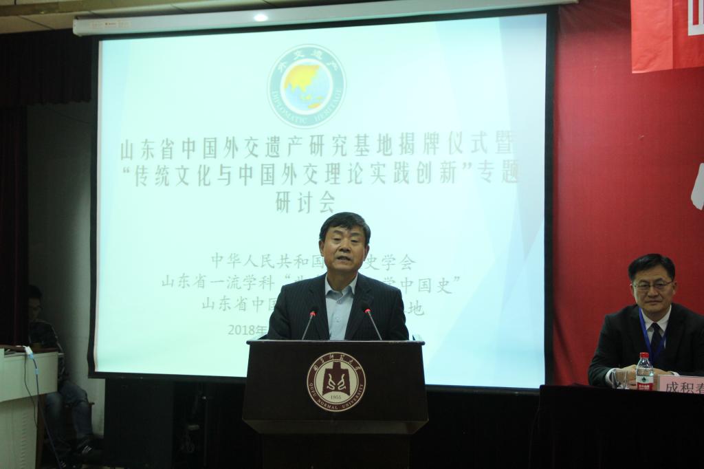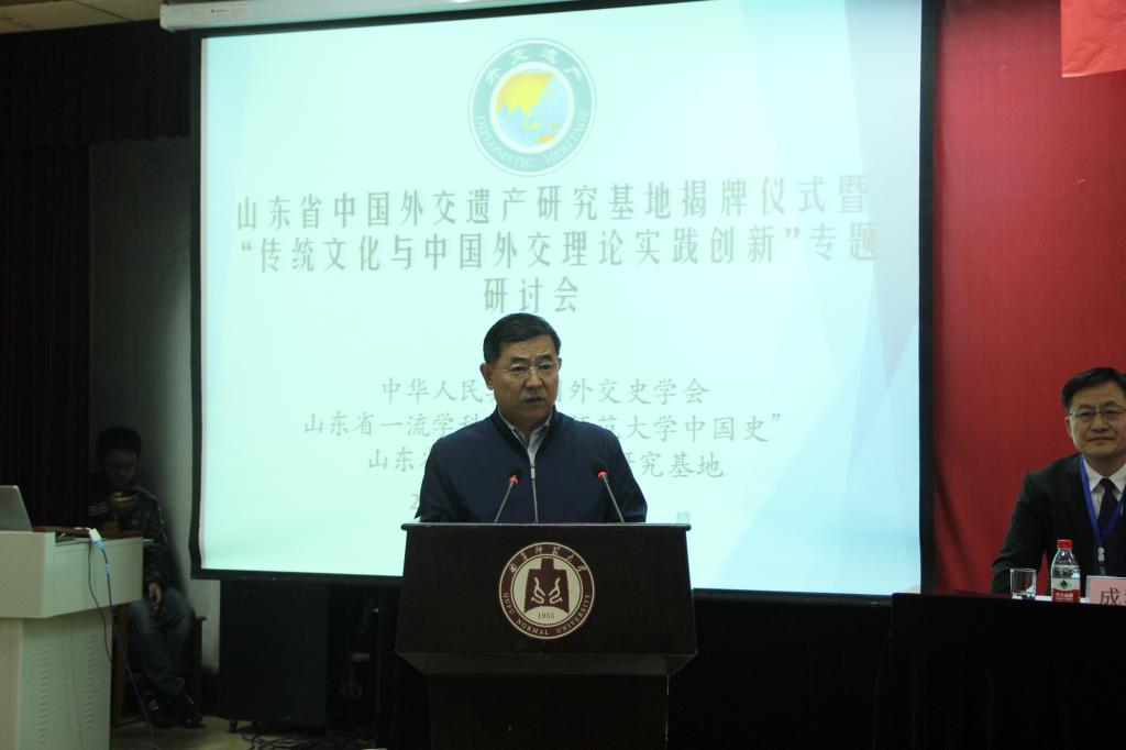 10月25日至10月27日,由中华人民共和国外交史学会、山东省一流学科“曲阜师范大学中国史”、山东省外交遗产研究基地共同举办,山东省一流学科“正妹av 中国史”承办的山东省中国外交遗产研究基地揭牌仪式暨“传统文化与中国外交理论实践创新专题研讨会”在山东省曲阜市隆重召开。来自中华人民共和国外交史学会、山东省委宣传部、中国社会科学杂志社、中国现代国际关系研究院、南京社会科学院、鲁东大学的中国前驻外大使、领导、专家与我校师生出席会议。会议开幕式由正妹av 长成积春主持,我校党委副书记马善军、外交部大使杜起文出席开幕式并致辞。