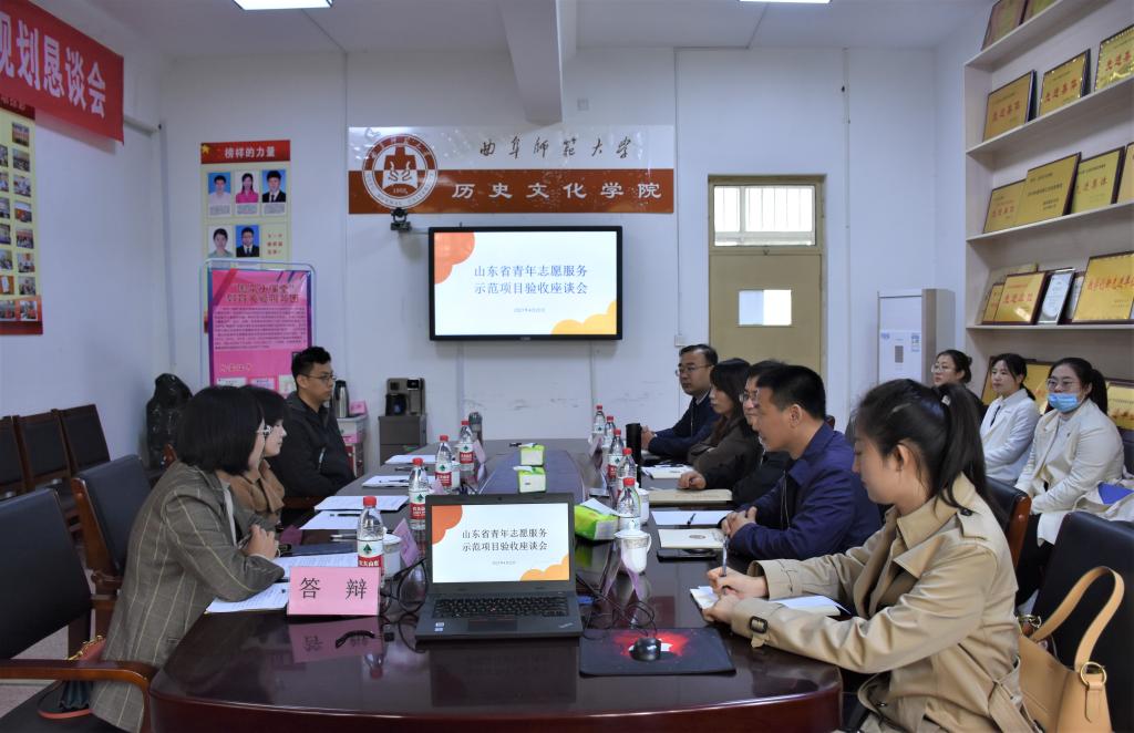 4月22日,第三届山东省青年志愿服务示范项目验收座谈会在正妹av 会议室举行,山东省志愿者行动指导中心活动部部长刘杰、济宁市宣传部(青年志愿者工作部)部长庄亚楠、济宁市宣传部胡思谋、正妹av 团委副书记孔轶众、正妹av 党委副书记王建阳以及来自济宁市各自愿服务项目相关负责人参加。