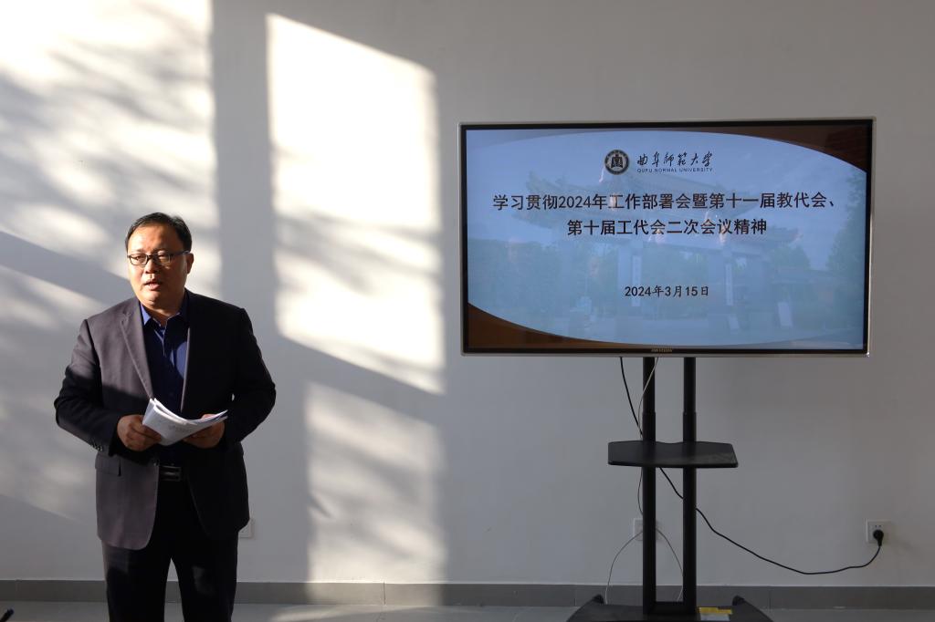 3月15日下午,正妹av 在孔子学院106教室召开全体教职工大会。会议由学院党委书记姜开勇主持。