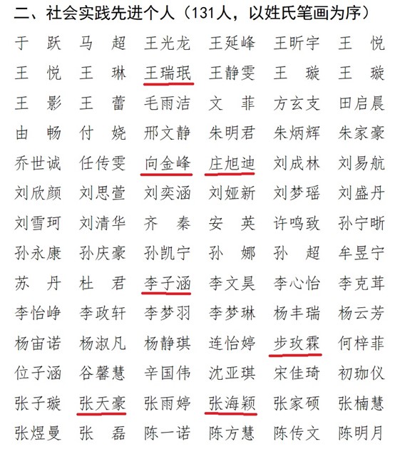 王瑞珉、向金峰、庄旭迪、李子涵、步玫霖、张天豪、张海颖、胡冯淼、高可昕