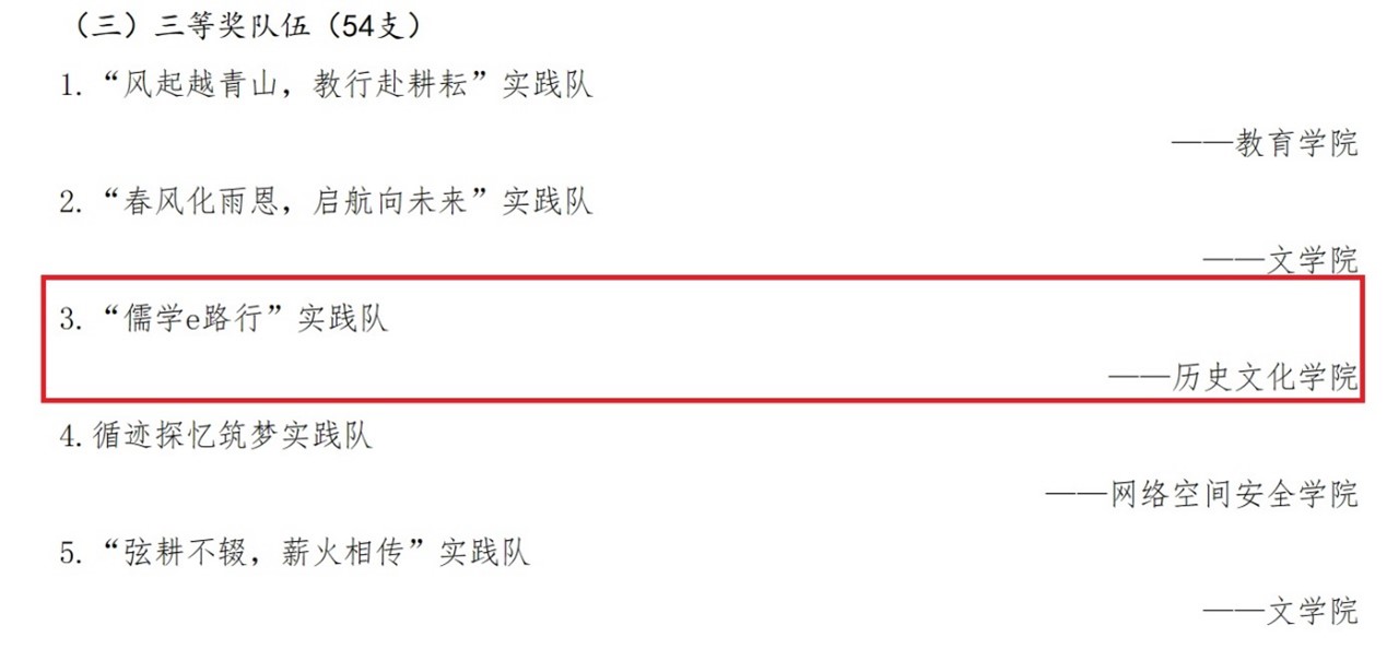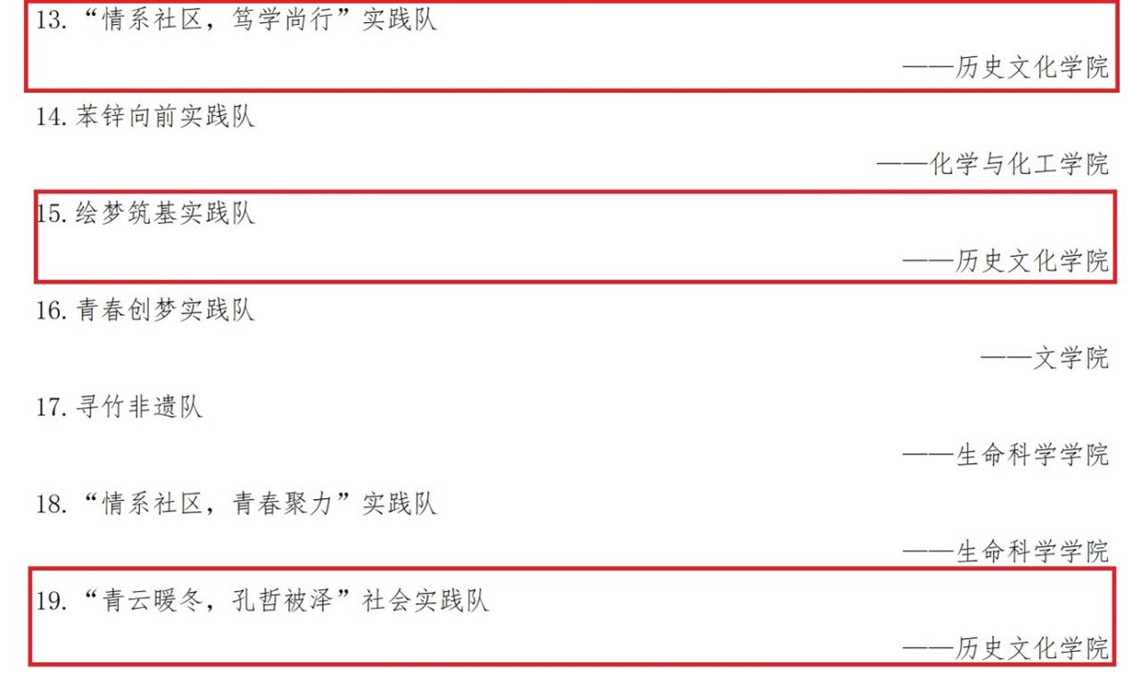 “儒学e路行”实践队、“情系社区,笃学尚行”实践队、绘梦筑基实践队、“青云暖冬,孔哲被泽”社会实践队、“匠心传承”文化探寻小分队、“出巷寻旅,永结馨言”社会实践队