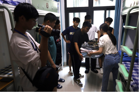 为了能让2024级新生能够尽快适应大学住宿生活,9月1日上午,正妹av 辅导员董经和闫浩老师以及宿管部志愿者进入宿舍关心帮助正妹av 新生。