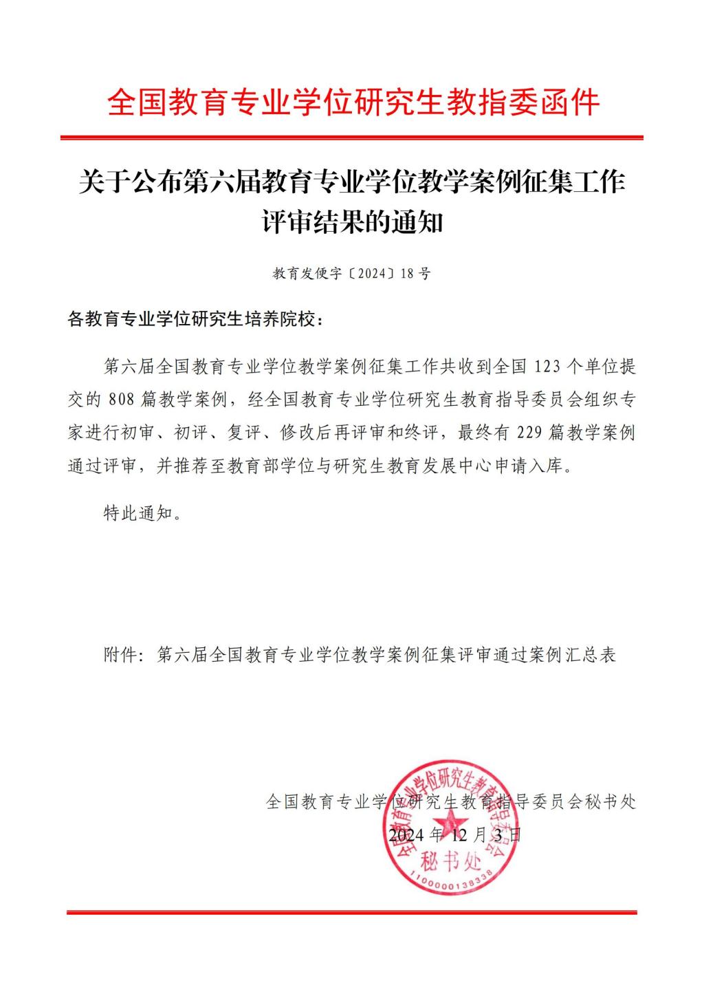 全国教育专业学位教学案例征集评审是由全国教育专业学位研究生教育指导委员会组织的高级别教学案例评选活动,旨在推动教育专业学位研究生教育改革,提升教育专业学位研究生培养质量。该活动自2013年启动以来,已成功举办六届,成为教育领域内具有重要影响力的教学案例评选平台。第六届征集工作共收到全国123个单位提交的808篇教学案例,经过多轮专家评审,最终有229篇教学案例通过评审,并被推荐至教育部学位与研究生教育发展中心入库。