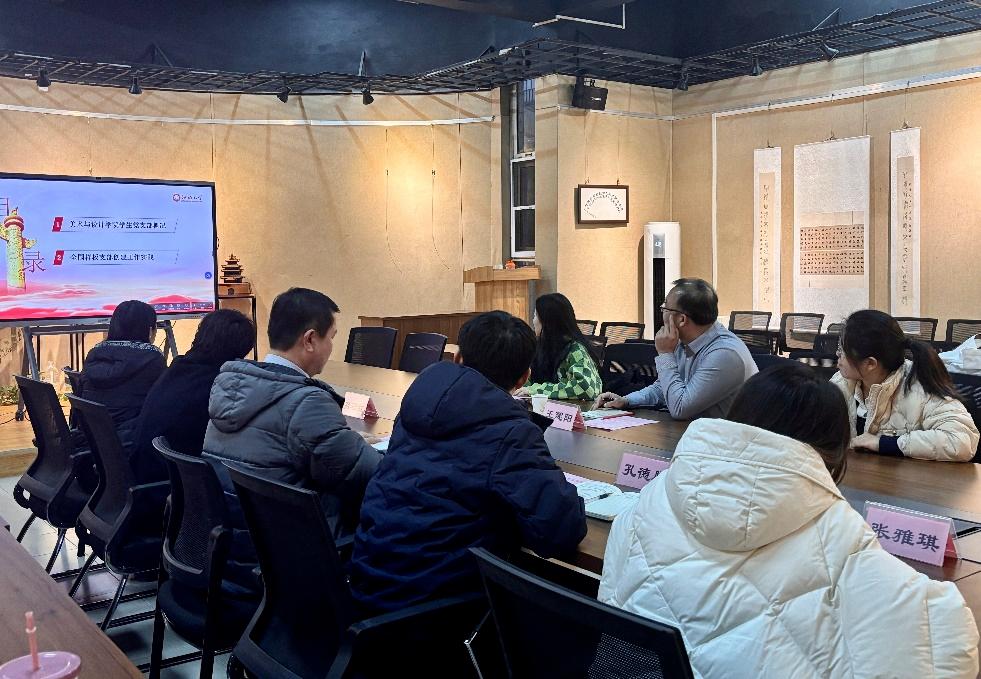12月11日,正妹av 党委副书记王建阳、团委书记刘贤贤、辅导员夏金金赴聊城大学美术与设计学院进行调研交流。聊城大学美术与设计学院党委书记杨庆实、党委副书记、副院长孙研红、团委书记孔德滕、辅导员许中美、党委组织员张雅琪参加会议。会议由孙研红主持。