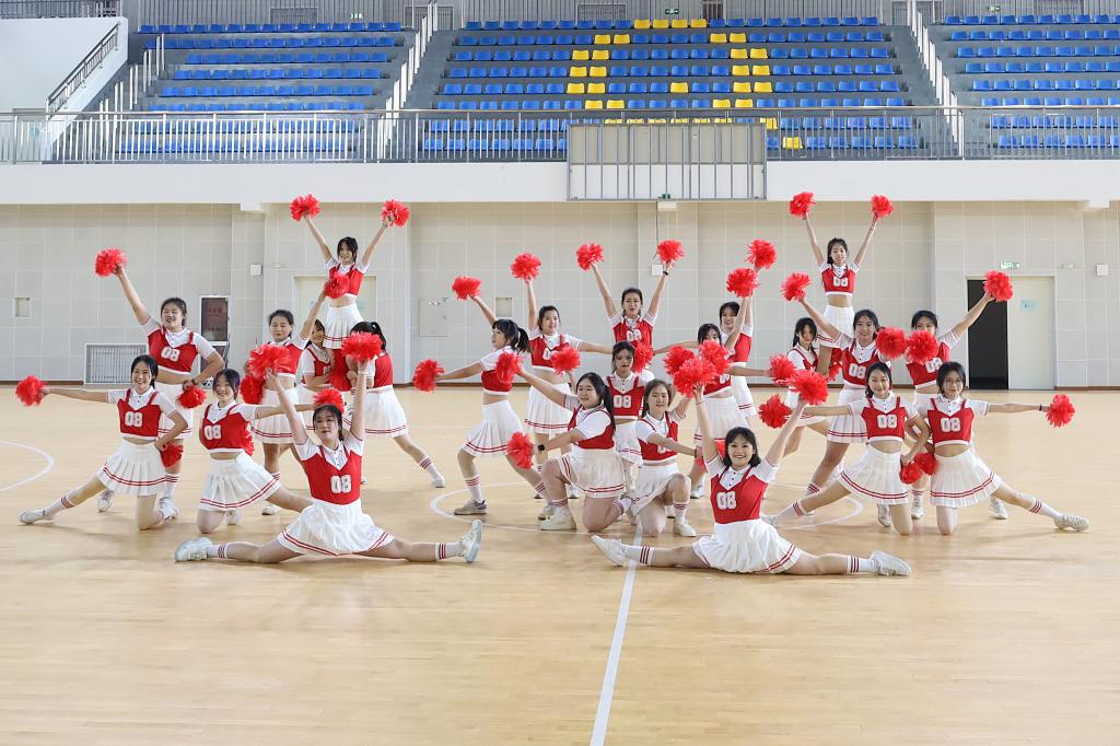 队员们身着靓丽统一的啦啦操队服,以热情饱满的姿态完美诠释了啦啦操的力量与美。高难度的托举动作、精准的队形变换、极具感染力的表情管理,让现场观众掌声雷动,评委老师给出一致好评。