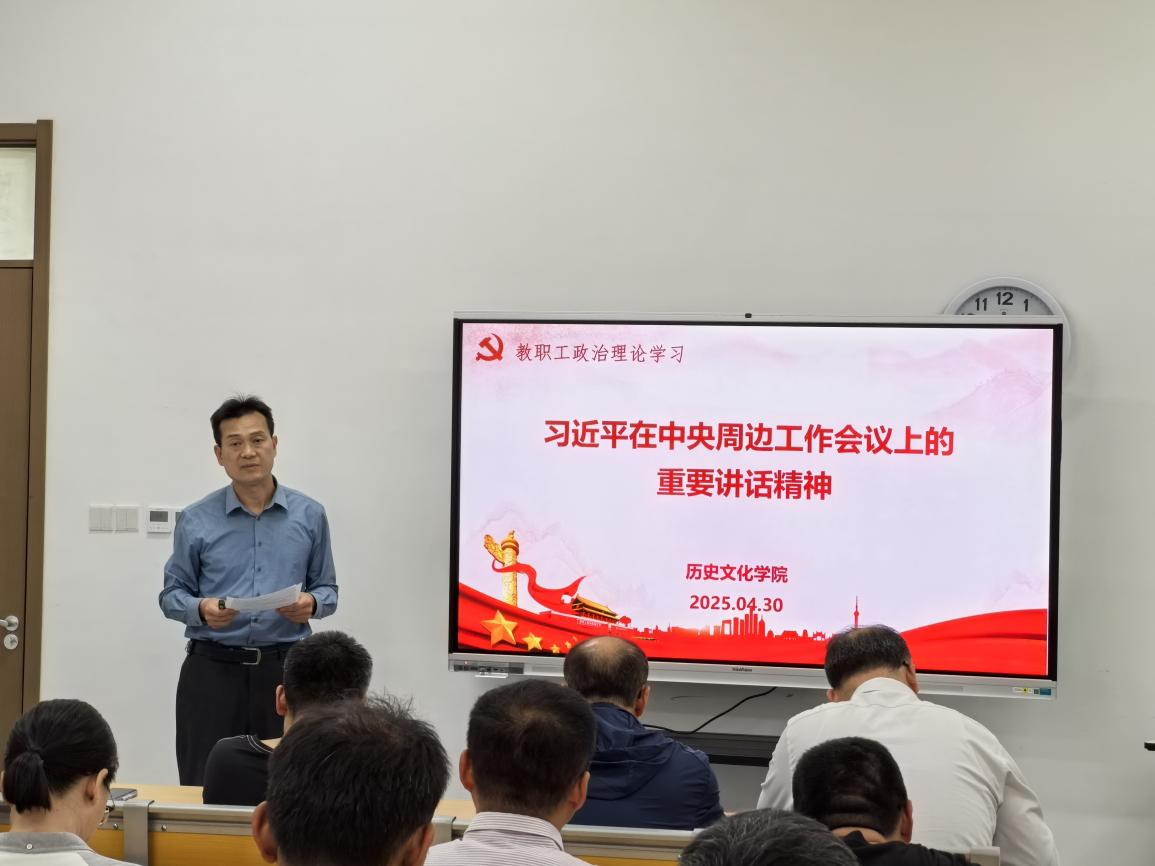 本次研训分三部分。首先,全体教师学习了习近平总书记在中央周边工作会议上的重要讲话精神。习近平总书记在讲话中系统总结了新时代以来我国周边工作的成就和经验,科学分析形势,明确了今后一个时期周边工作的目标任务和思路举措,强调要聚焦构建周边命运共同体,努力开创周边工作新局面。