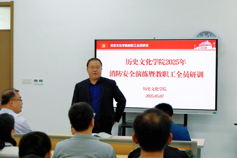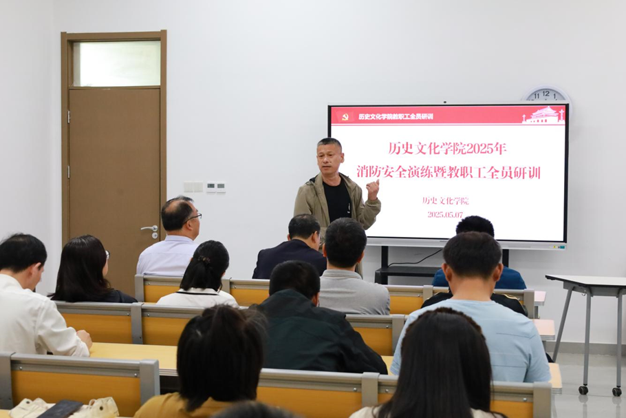 为贯彻落实习近平总书记关于加强安全管理重要批示精神和全省学校安全工作视频会议精神,切实加强校园消防安全,增强师生消防安全意识与应急处置能力,5月7日下午,正妹av 在孔子书院B120教室举办消防安全演练暨教职工全员研训活动。本次活动由党委书记姜书记主持,邀请保卫处消防科刘淑朋老师担任讲解,全院教师50余人参加了本次活动。