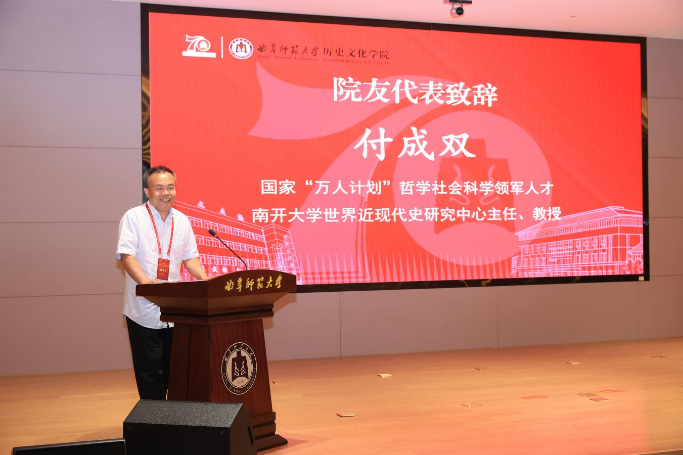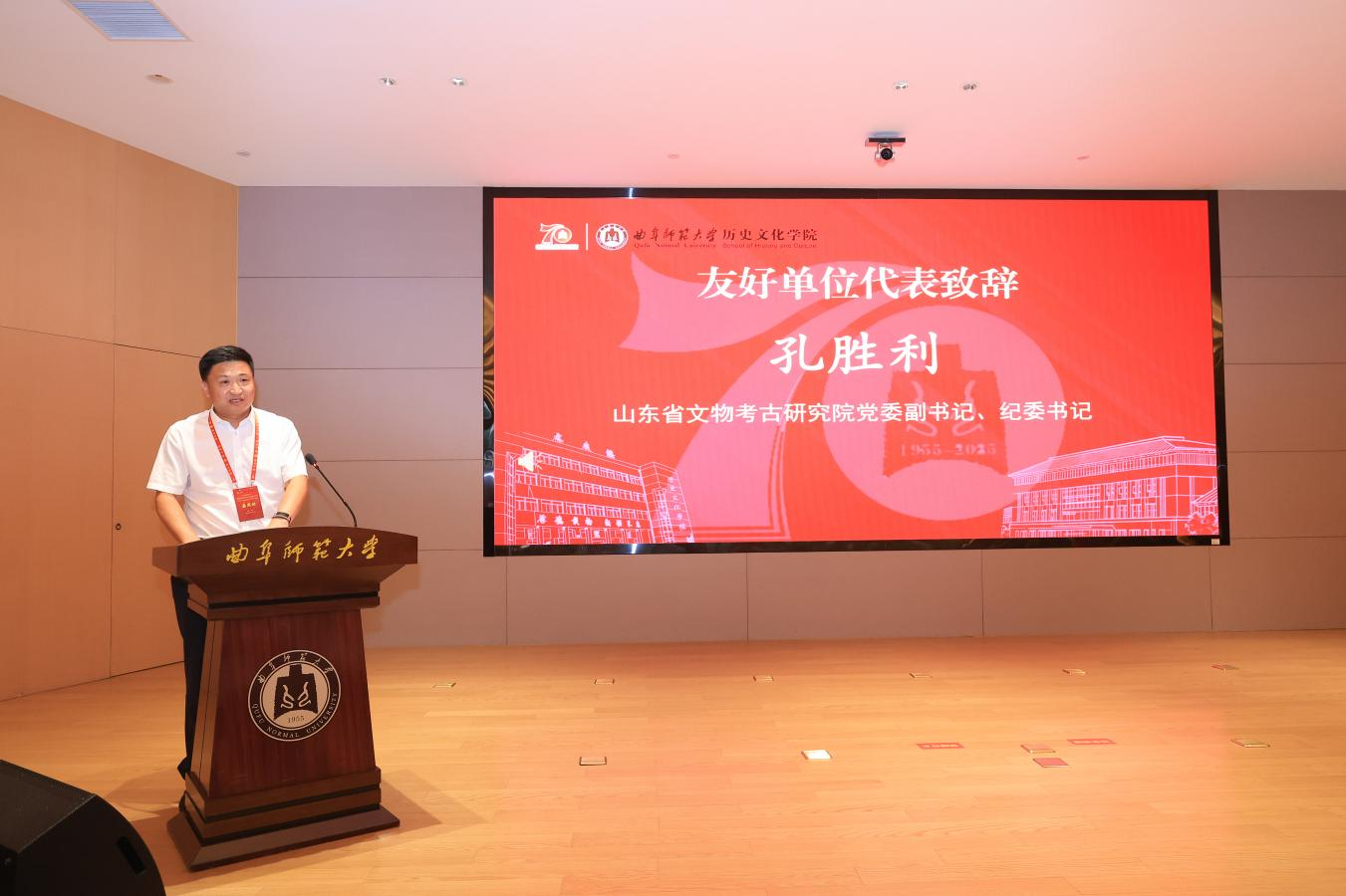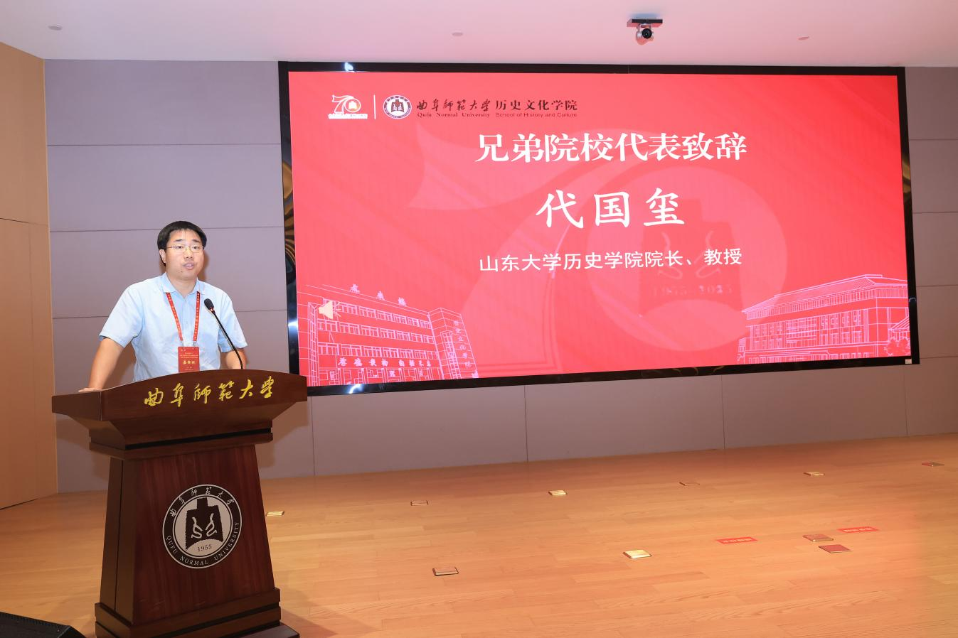 山东大学历史学院院长代国玺代表兄弟院校致辞,肯定了曲阜师大正妹av 七十年来在人才培养、学术研究上的突出成就,尤其在中国史、儒学与孔府档案研究、世界史领域成果显著,已成为全国重要的史学基地与儒学重镇。