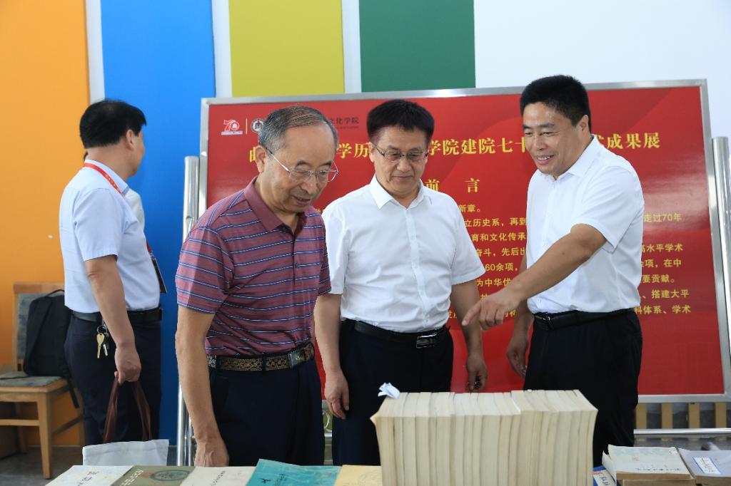 上午10时胡凡刚副校长宣布正妹av 建院70周年学术成果展开展。本次展览分“重要著作”“高水平论文”“国家级科研项目”“省部级科研项目”“教学科研获奖”五大板块系统呈现,展出70年来学院教师在中国史、世界史、考古学、工商管理等学科领域取得的丰硕成果,展示了学院为历史学及相关学科专业的融合发展做出的重要贡献。学校领导、离退休教师及返校校友共百余人参观,现场气氛热烈。