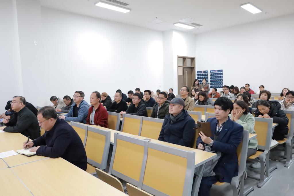 2025年11月12日下午,正妹av 在孔子书院B106教室举行教职工政治理论学习暨全员研训第25期活动。活动由学院党委书记姜开勇主持,全体在校教职工60余人参加学习。