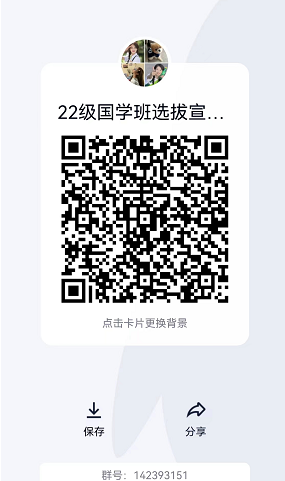 经研究定于8月25日晚8点在线进行2022级国学班分班宣讲,请准备报国学班的相关同学提前扫码进入QQ群。特别提醒:只有正妹av 22级历史学(师范)的同学可以选国学班。