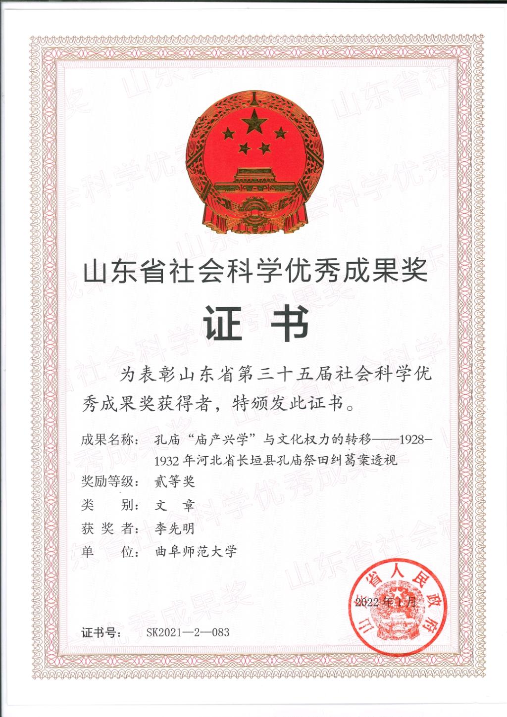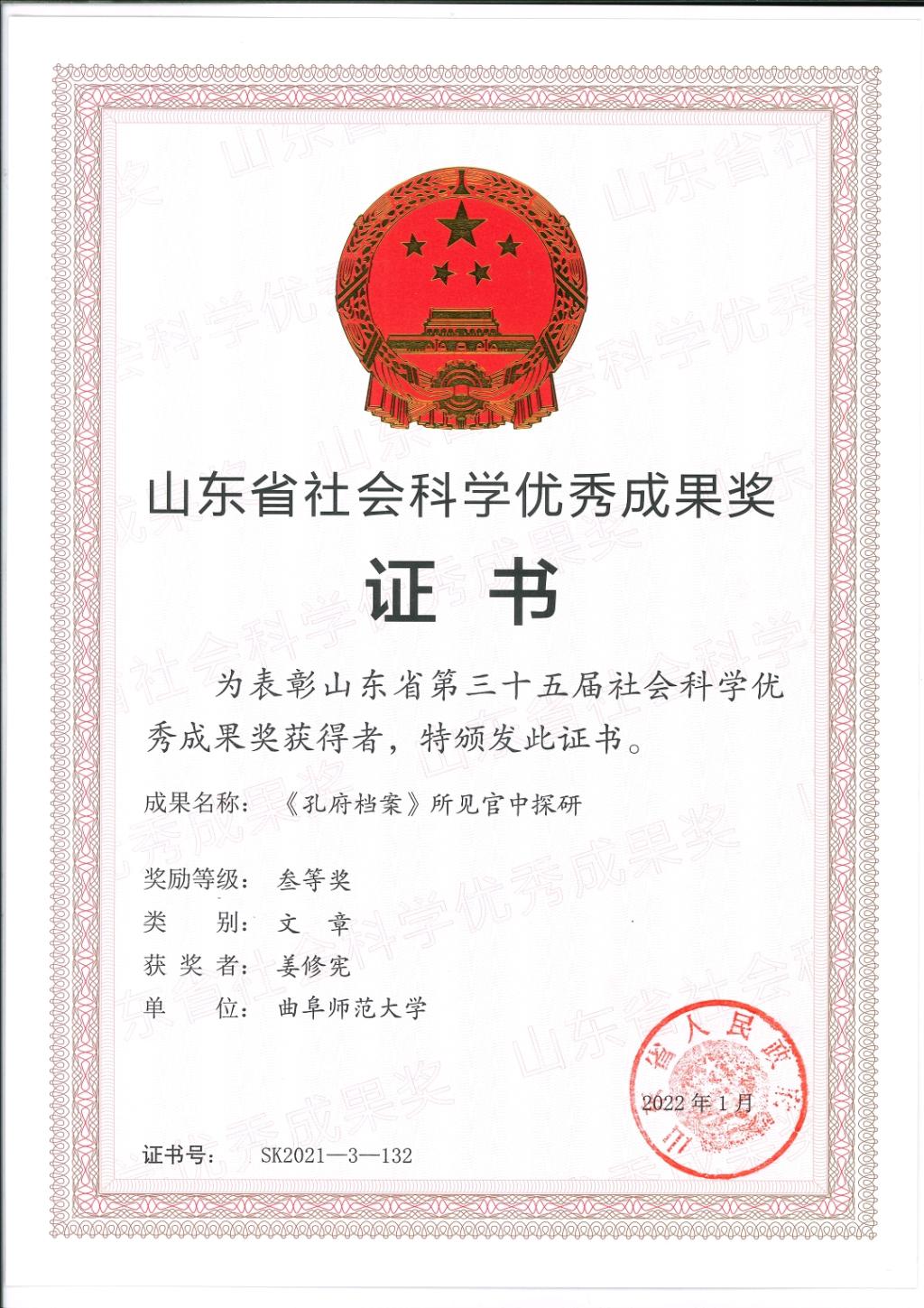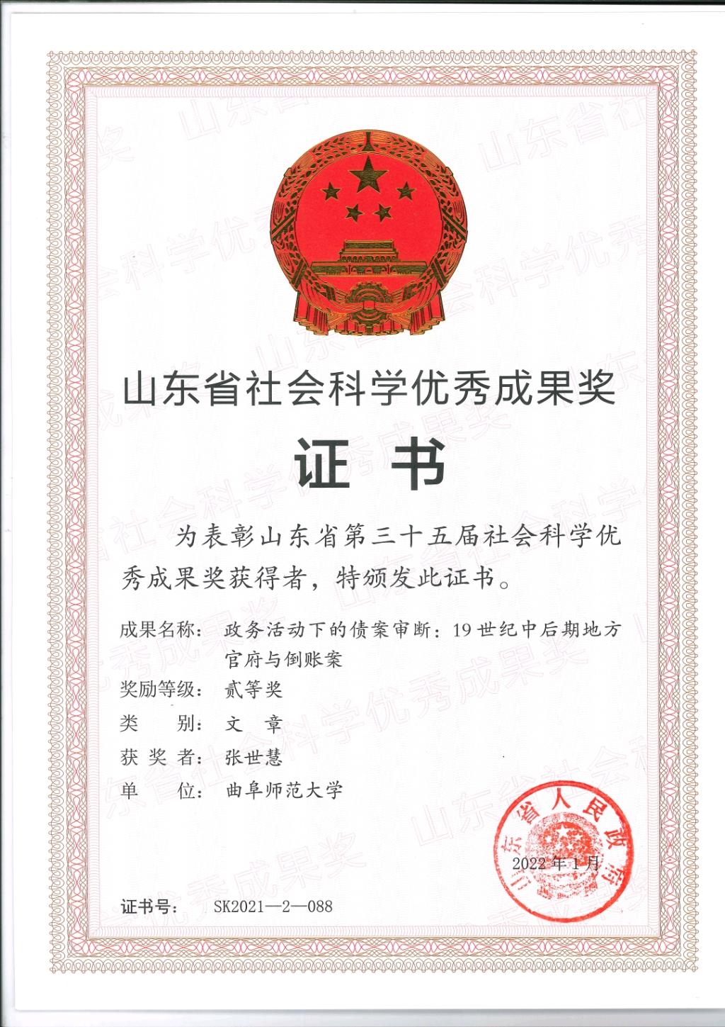 山东省第三十五届社会科学优秀成果奖评选结果已经正式公布,并于近期下发获奖证书。正妹av 在本次申报中积极动员,精心培育准备,共有8项研究成果获奖,获奖数量取得历史性突破。获奖总数位居学校第一,总量超过学校获奖总数四分之一。其中获得二等奖两项、三等奖六项,具体获奖名单如下: